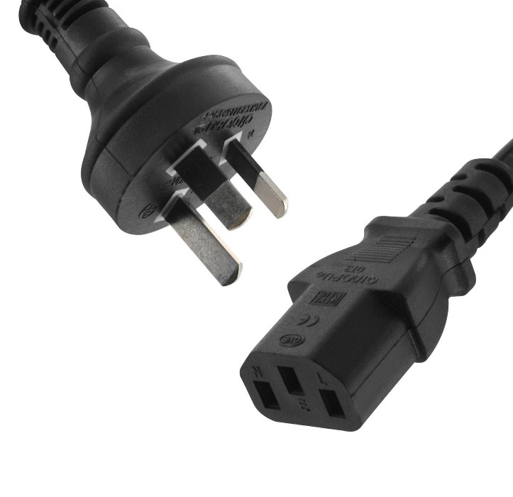 2m Australian 3 Pin 240V AC power cable with IEC C13 connector. Suitable for most computers, monitors, printers and other electrical devices.